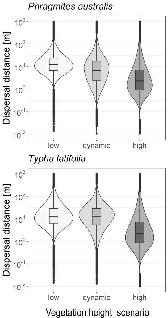 As an extra aside project after finishing my PhD, in collaboration with Dr. Jinlei Zhu we studied the dispersal seed distances of Typha latifolia and Phragmites australis between kettle holes under different scenarios of land-use management. Dr. Zhu has developed a very sophisticated model with different parameters including properties of the plant (release seed height, terminal velocity of the seeds) and also the surrounding vegetation.